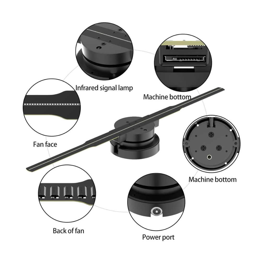 Vortex 3D is a high-quality holographic fan that brings your visuals to life with sharp, bright, and realistic floating images. It allows you to display logos, products, animations, and videos in mid-air, creating an immersive and unforgettable experience.